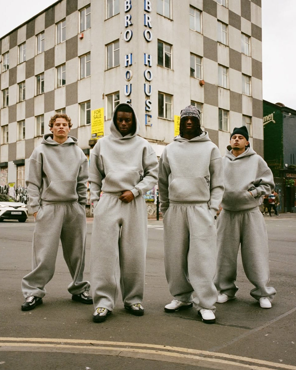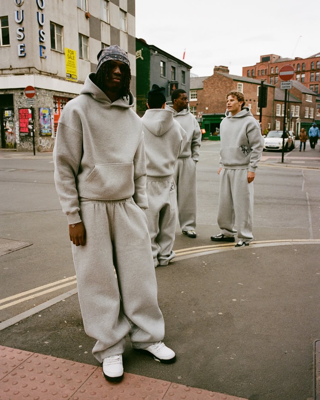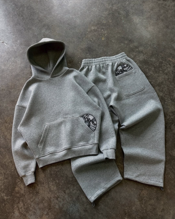 Unser Signature-Hoodie und unsere Hose in einem minimalistischen Set, entworfen für den täglichen Komfort. Der Schnitt fällt perfekt auf die Sneaker.